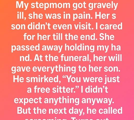I didn’t expect anything anyway. But the next day, he called screaming. Turns out…He had discovered a letter tucked inside one of the old boxes his mother left behind. It wasn’t addressed to him—it was addressed to me. In it, she thanked me for caring for her with patience and kindness when she felt most vulnerable. She wrote that while she couldn’t change her will without causing family conflict, she hoped her words would remind me that what I gave her mattered more than anything she could give in return. She said I had been her comfort, her steady hand, and her peace in her final days.