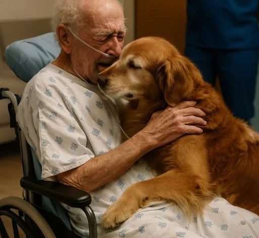 The hospital room was dim and still, the air filled with the faint rhythm of a heart monitor—soft, distant, fading. An 82-year-old man lay in the bed, his breath shallow, his skin pale and paper-thin. Everyone knew the truth: the cancer had spread too far, the treatments had stopped working. The doctors said he had hours, maybe a day. But what weighed on him wasn’t fear of dying. It was the thought of leaving his closest companion behind.