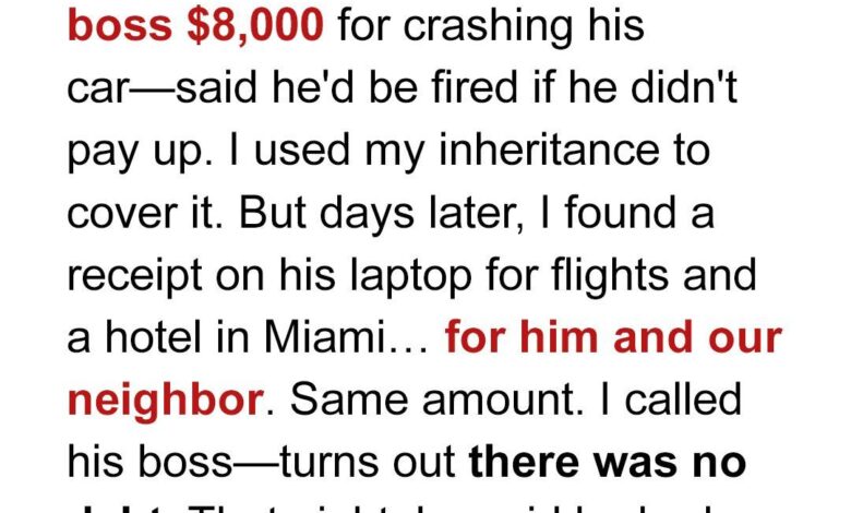 Three months later, the safety of our routine was shattered. Mike came home one evening looking like a man who had seen a ghost. He was pale, his hands were shaking, and he could barely maintain eye contact as he sat me down at the kitchen table. He told me a harrowing story about a lapse in judgment at work. He claimed he had taken his boss’s expensive luxury car for a quick errand and ended up in a significant collision. According to Mike, his boss was livid and had given him a brutal ultimatum: pay eight thousand dollars for the repairs out of pocket by the end of the week, or face immediate termination and potential legal action. As I watched the man I loved tremble with what I thought was genuine fear for our livelihood, I didn’t hesitate for a second. I told him we would use the inheritance. I wired the eight thousand dollars that very night, feeling a sense of noble relief that I could protect our life together from such a catastrophic mistake.