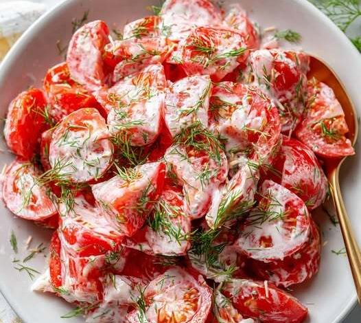 Say goodbye to bland greens and hello to this vibrant no-cook salad that’s bursting with flavor. Juicy tomatoes meet creamy garlic dressing, fresh dill, and a hint of tang in a dish that’s equally at home beside grilled meats or stealing the spotlight at your next potluck. It’s simple, satisfying, and seriously addictive.