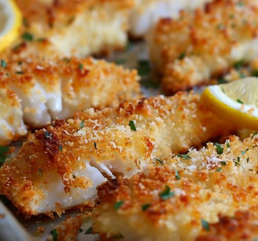 - Prepare Coating: In a shallow dish, mix together panko breadcrumbs, grated Parmesan, garlic powder, paprika, salt, and black pepper.