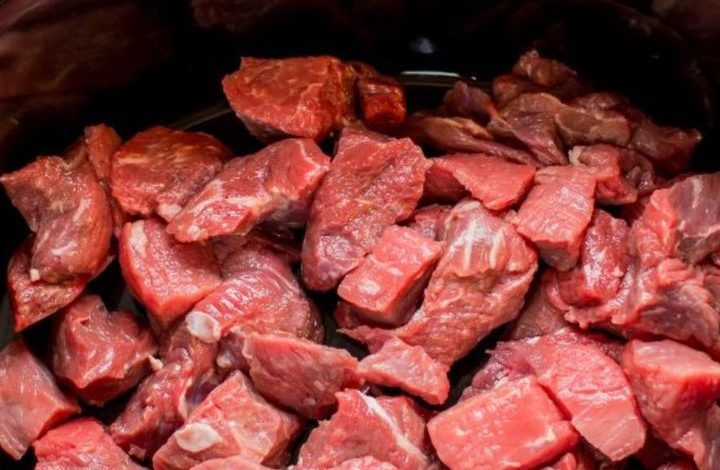 - Prepare the Slow Cooker: Add the beef stew cubes to a 6-quart or larger slow cooker.