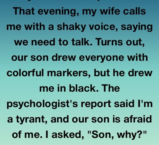 They did a test at preschool. That evening, my wife calls me with a shaky voice, saying we need to talk. Turns out, our son drew everyone with colorful markers, but he drew me in black. The psychologist’s report said I’m a tyrant, and our son is afraid of me. I asked, “Son, why?” He said, “Because black means strong. You’re the strongest, daddy.”