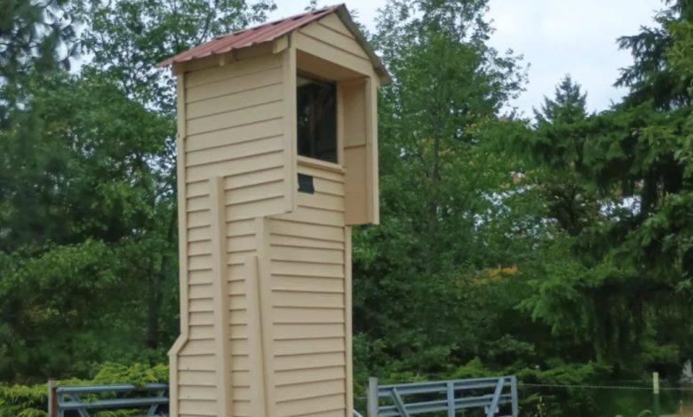 Drivers traveling a rural road north of Gresham, Oregon, often see a tall, skinny wooden structure by a driveway. The structure is about 15 feet tall, has siding and a small pitched roof, and has a lower, glass panel facing the driveway. It is not a deer feeder, tree house, or mailbox. It is something altogether different.